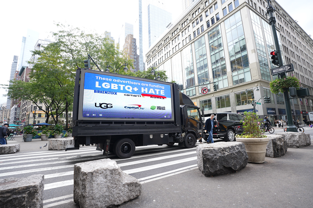 Ekō is a global campaigning organization of more than 23 million members, stopping big corporations from behaving badly. In 2023, Ekō installed a giant billboard outside of New York Advertising Week, naming big brands that are appearing next to LGBTQ+ hate speech on YouTube. In 2022, they were also at Ad Week, inviting attendees to guess where their ad money is going when they advertise on YouTube.